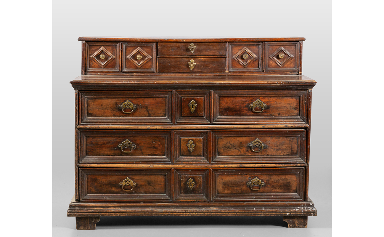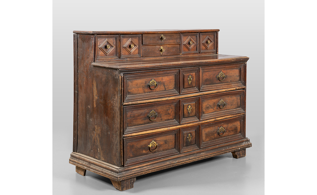Canterano con alzata in massello tre cassetti sul fronte alzata a sei cassetti Lombardia sec.XVII