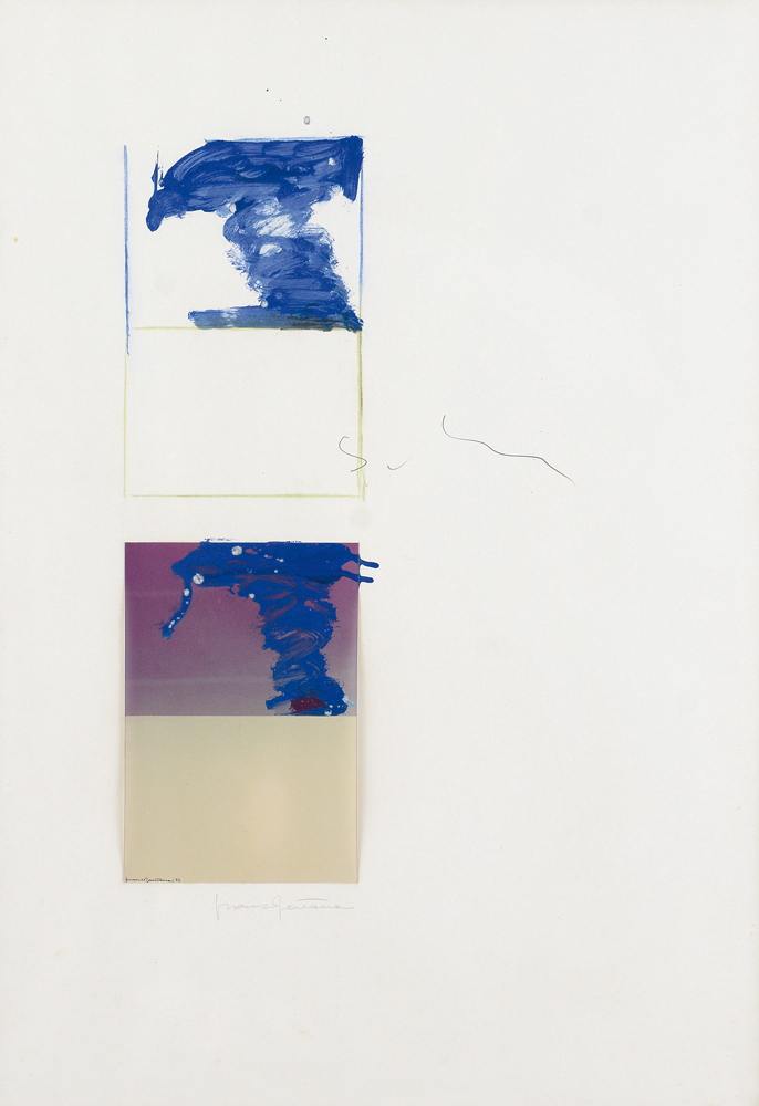 tecnica mista e applicazione di foto a firma Franco Fontana su carta cm. 100x70, firme di Mario Schifano al centro e di Franco Fontana in basso al centro, anno sulla fotografia di Fontana.