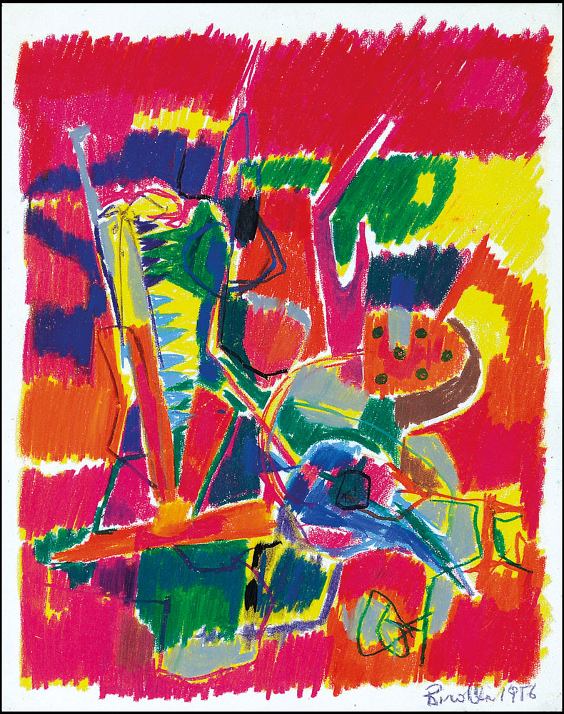 pastelli a cera su carta cm. 51x40, firma e anno in basso a destra.