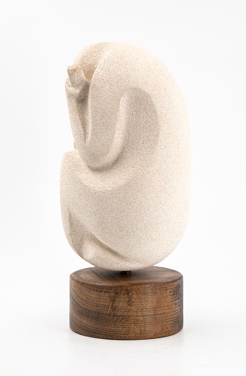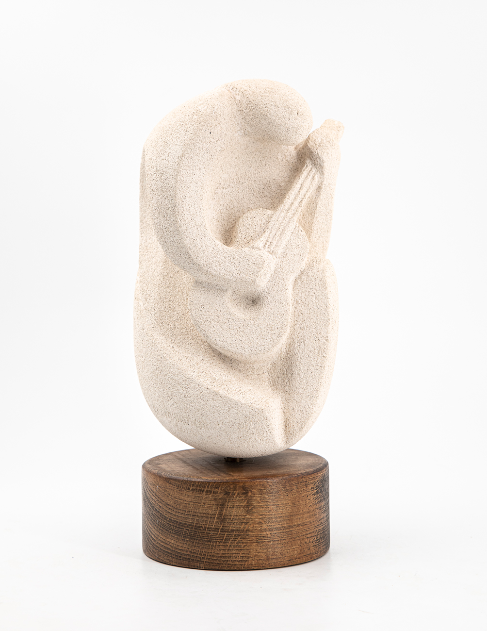 Scultura in terracotta poggiante su base in legno