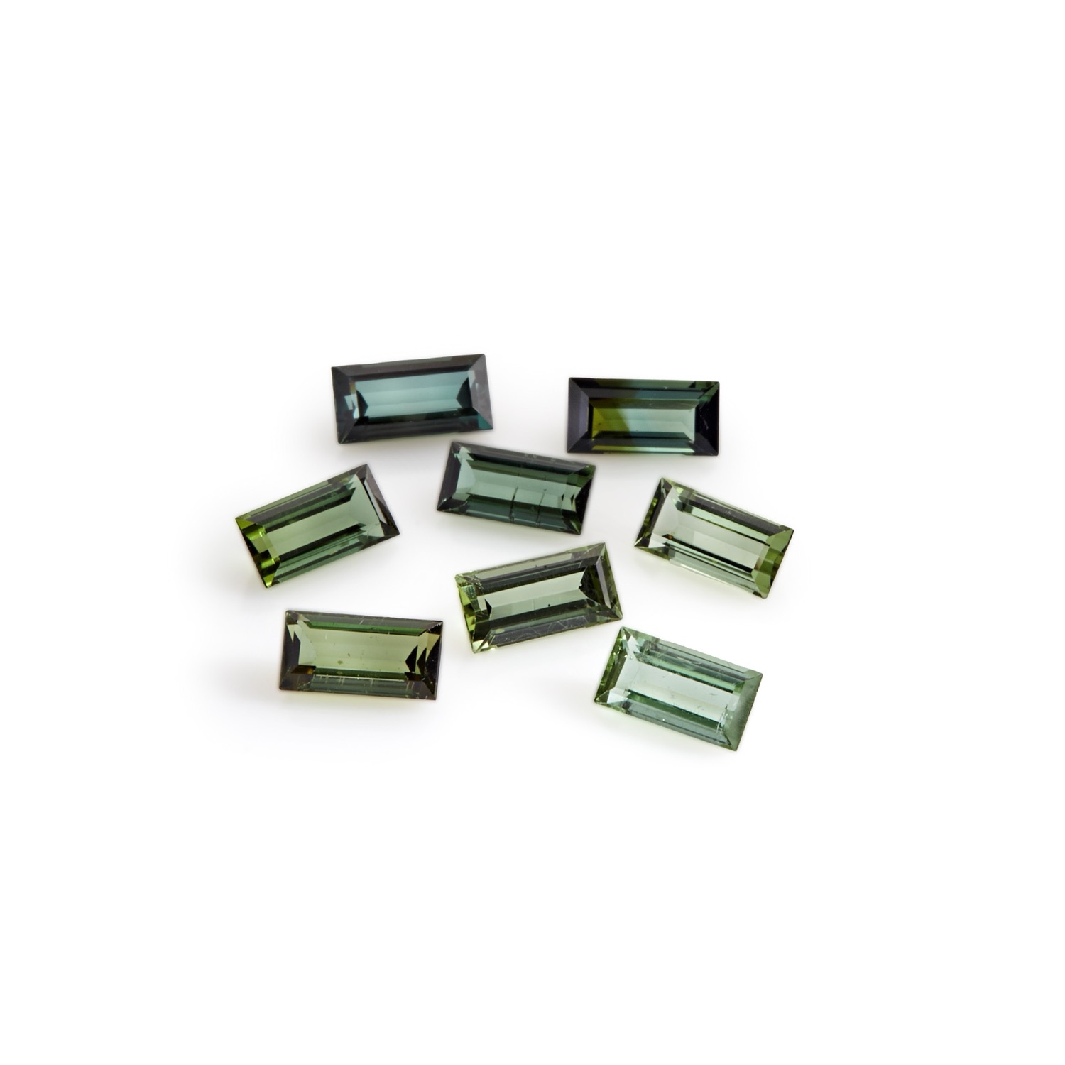 Lotto di otto tormaline verdi in cartina per totale ct 6,84 mm 8,00x4,00