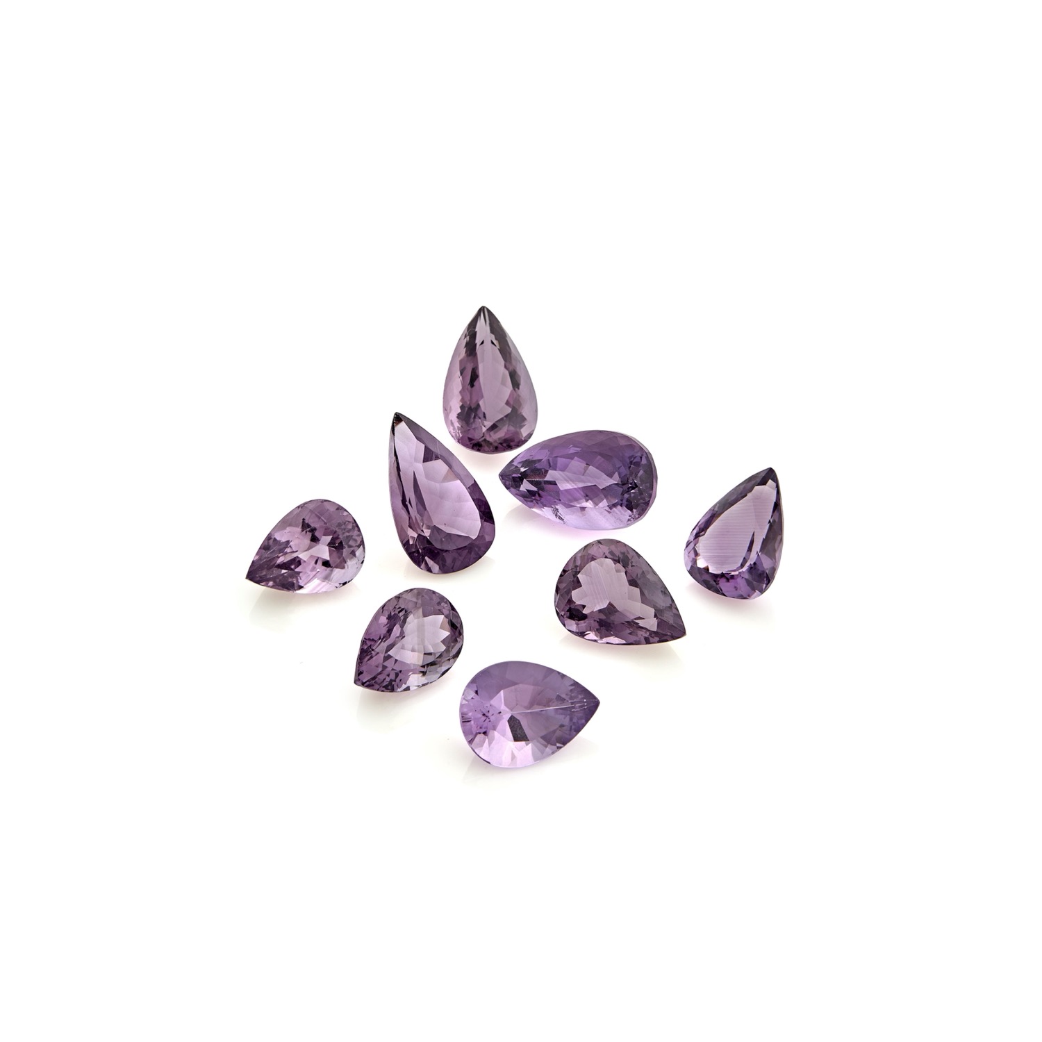 Lotto di otto ametiste in cartina per totale ct 143,00 misure diverse da mm 13,00x18,00 a mm 15,00x25,00 circa