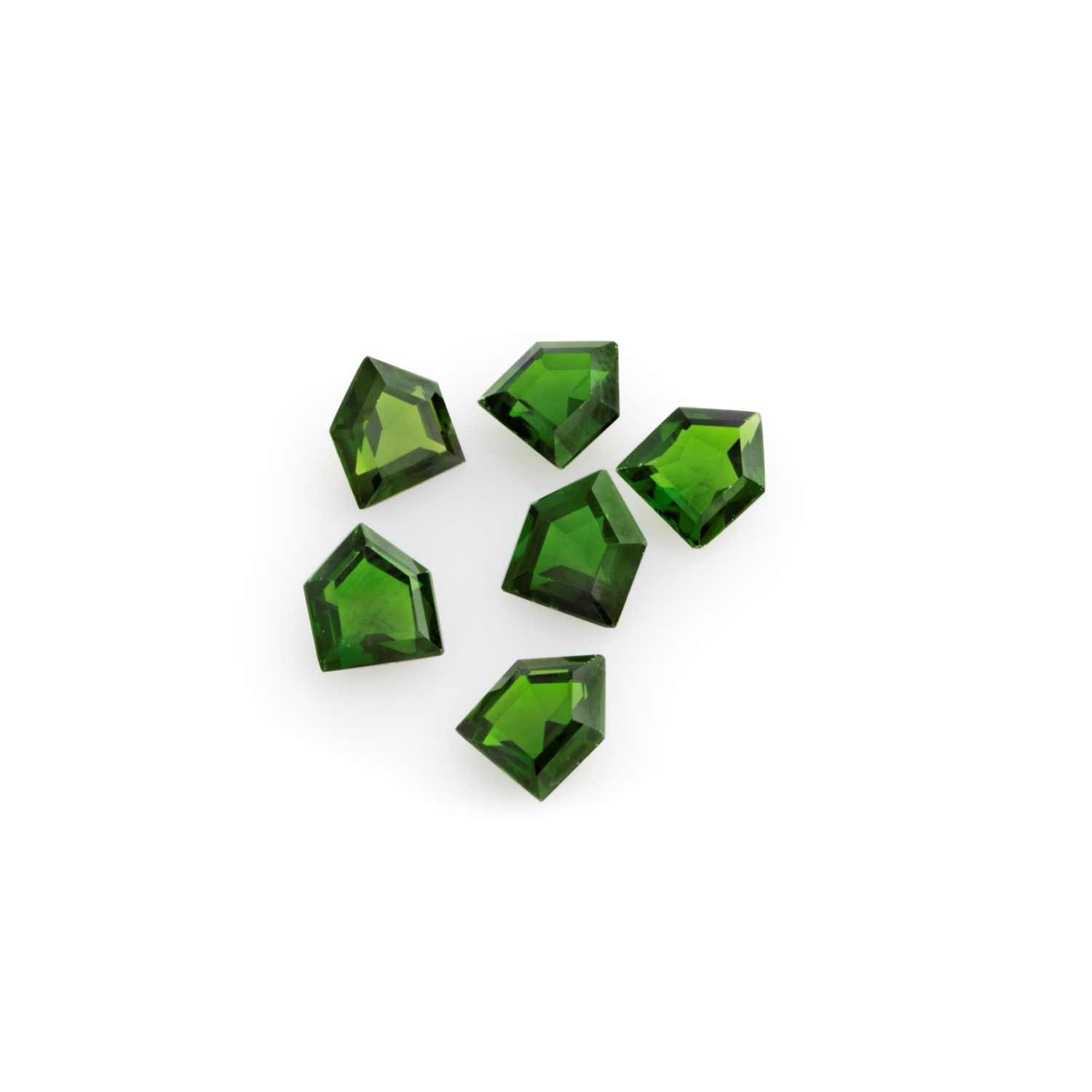 Lotto di sei diopsidi verdi in cartina per totale ct 6,60 mm 7,00x6,00