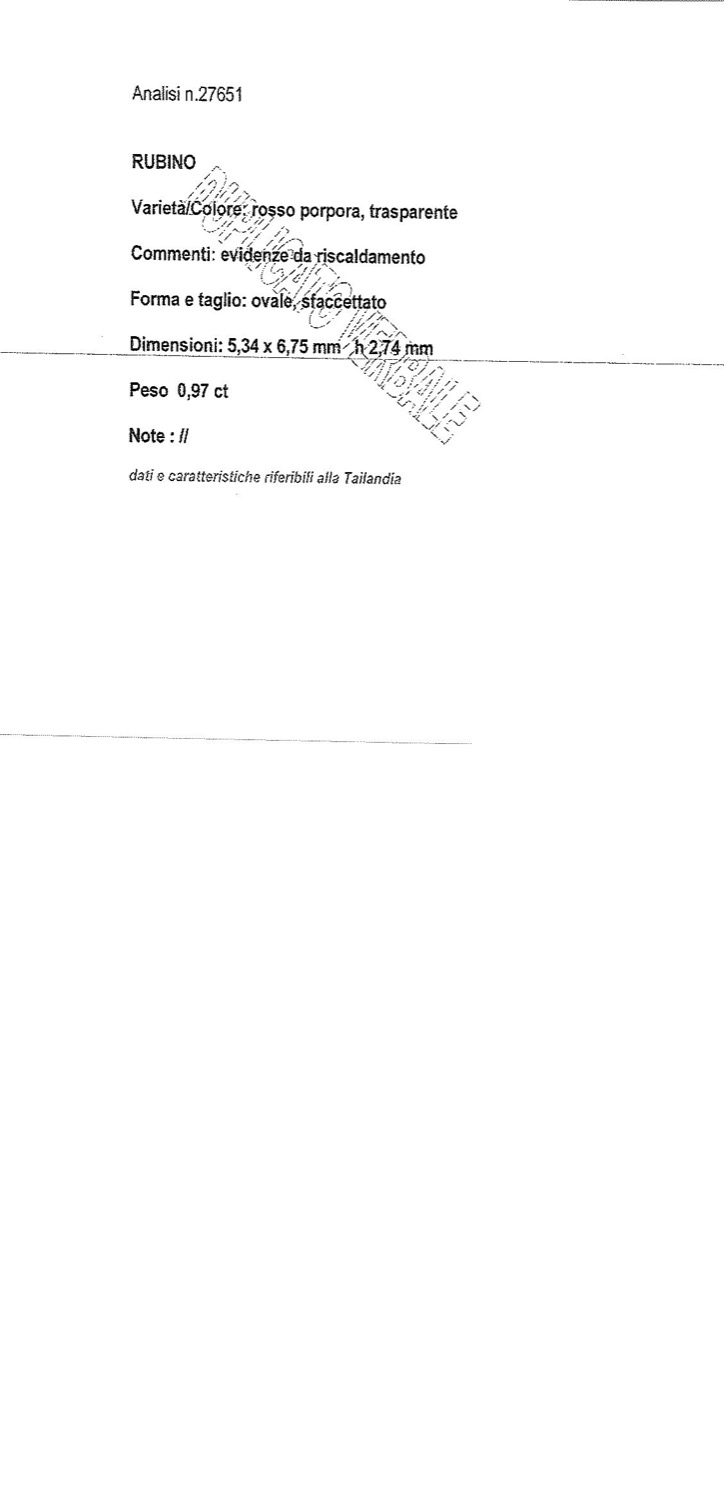 Rubino Tailandia in cartina ct 0,97 mm 5,34 x 6,75 h 2,74