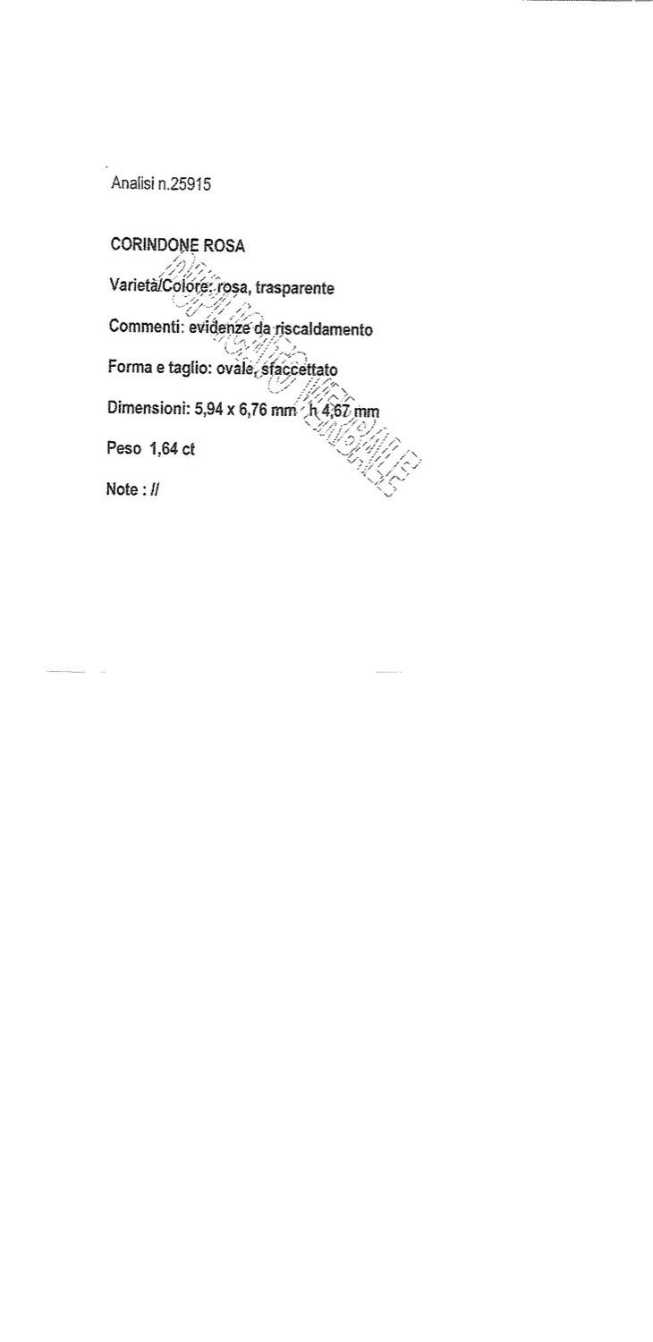Precedente Lotto 198 Successivo Finarte - Via dei Bossi 2, 20121 Milano Gemme / Tutti i colori della natura Sessione unica martedì 23 settembre 2025 ore 11:00 (UTC +01:00) Corindone rosa in cartina ct 1,64 mm 5,94 x 6,76 h mm 4,67 di forma ovale, taglio sfaccettato, heat.