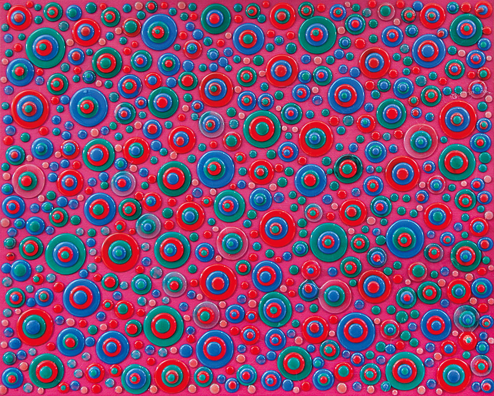 colle termofusibili su tela cm. 40x50, firma, titolo e anno al retro. dichiarazione d'autenticità dell'artista su foto.