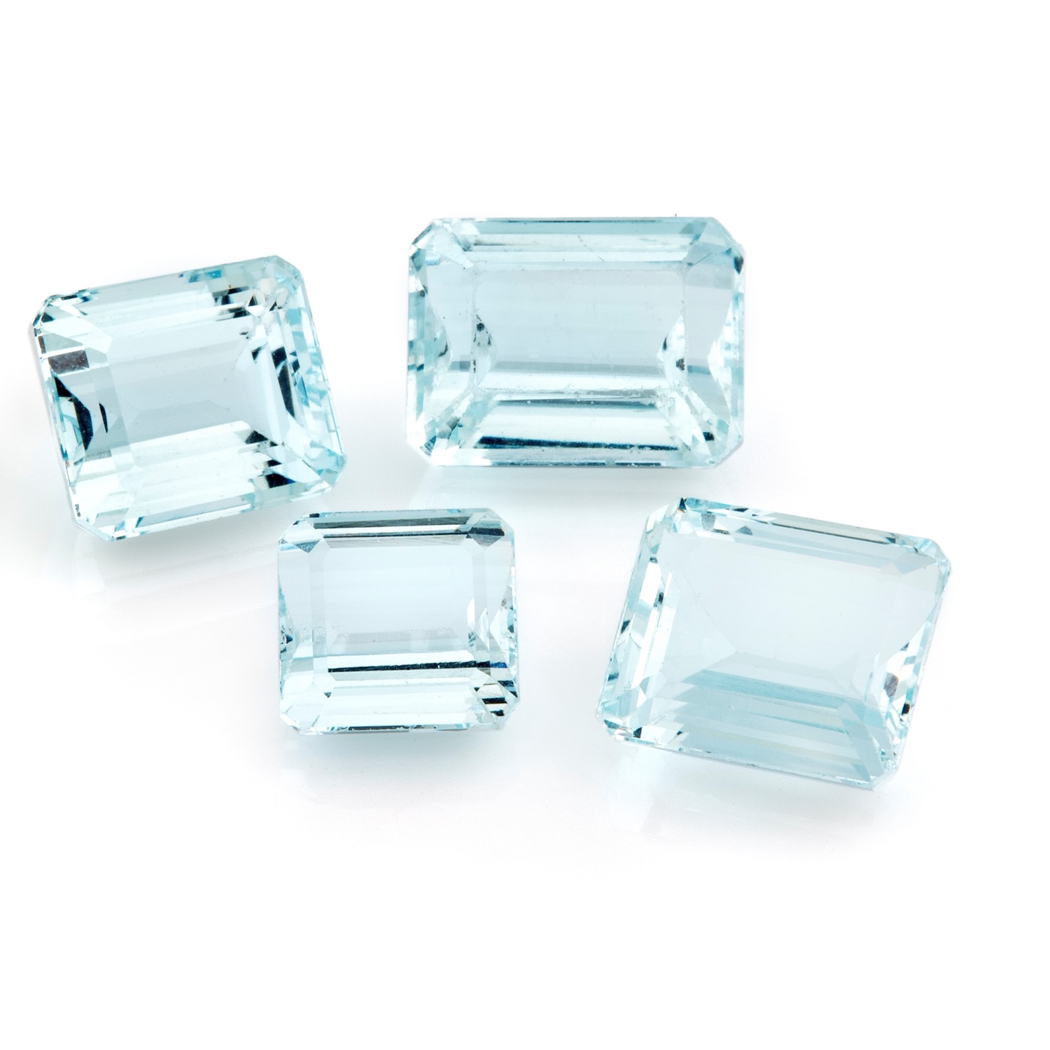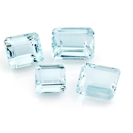 Lotto di quattro acquemarine in cartina per totale ct 23,43 degradé da mm 8,36x8,88 a mm 10,00x13,00