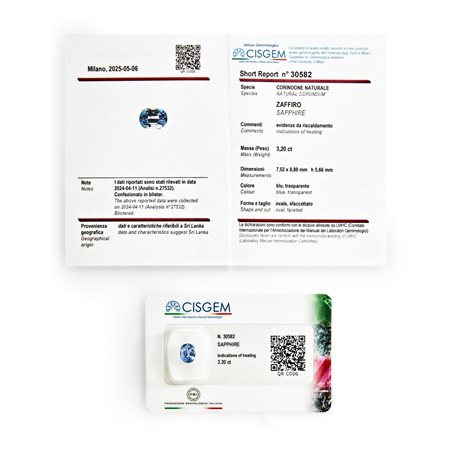 Precedente Lotto 218 Successivo Finarte - Via dei Bossi 2, 20121 Milano Gemme / Tutti i colori della natura Sessione unica martedì 23 settembre 2025 ore 11:00 (UTC +01:00) Zaffiro Ceylon in blister ct 3,20 mm 7,02 x 8,89 h mm 5,66 di forma ovale, taglio sfaccettato, heat.