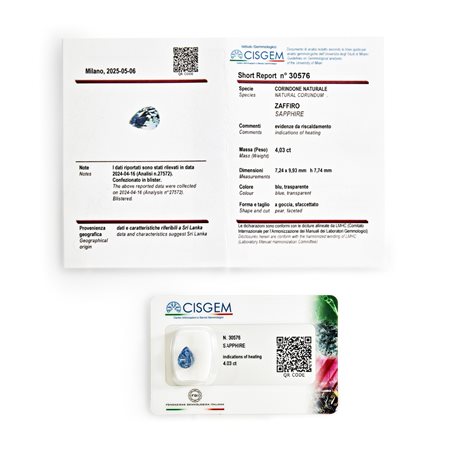 Precedente Lotto 222 Successivo Finarte - Via dei Bossi 2, 20121 Milano Gemme / Tutti i colori della natura Sessione unica martedì 23 settembre 2025 ore 11:00 (UTC +01:00) Zaffiro Ceylon in blister ct 4,03 mm 7,24 x 9,93 h mm 7,74 di forma a goccia, taglio sfaccettato, heat.