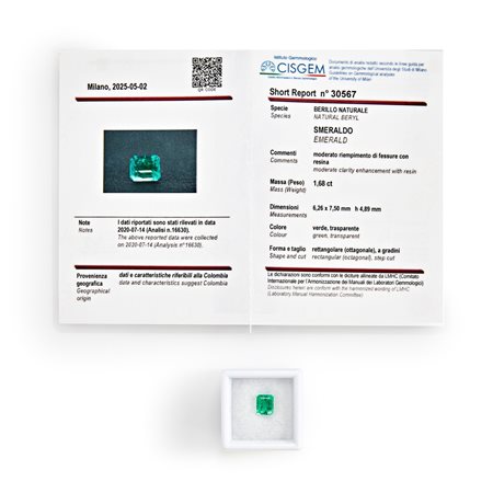 Smeraldo Colombia in cartina ct 1,68 mm 6,26 x 7,50 h mm 4,89