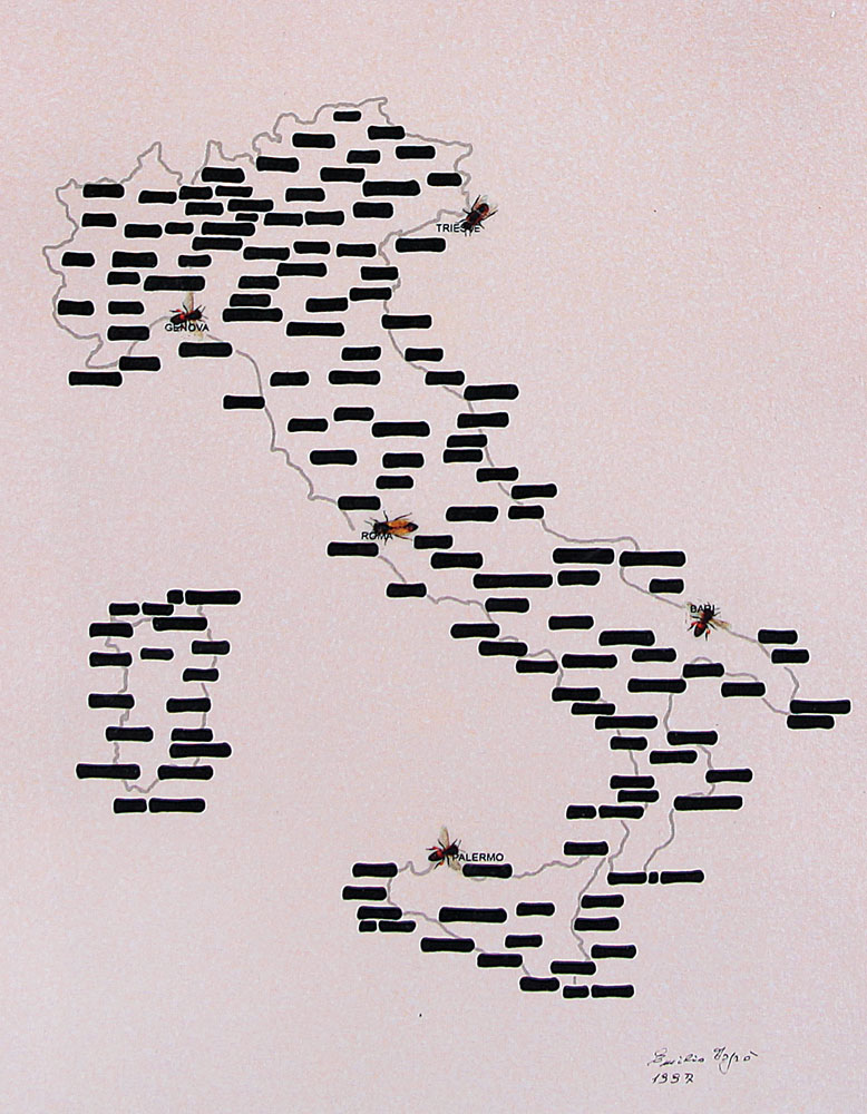 tecnica mista su carta cm. 46x35, firma e anno in basso a destra, titolo e tecnica al retro, dichiarazione d'autenticità dell'artista su 2 foto, entro teca in plexiglass.