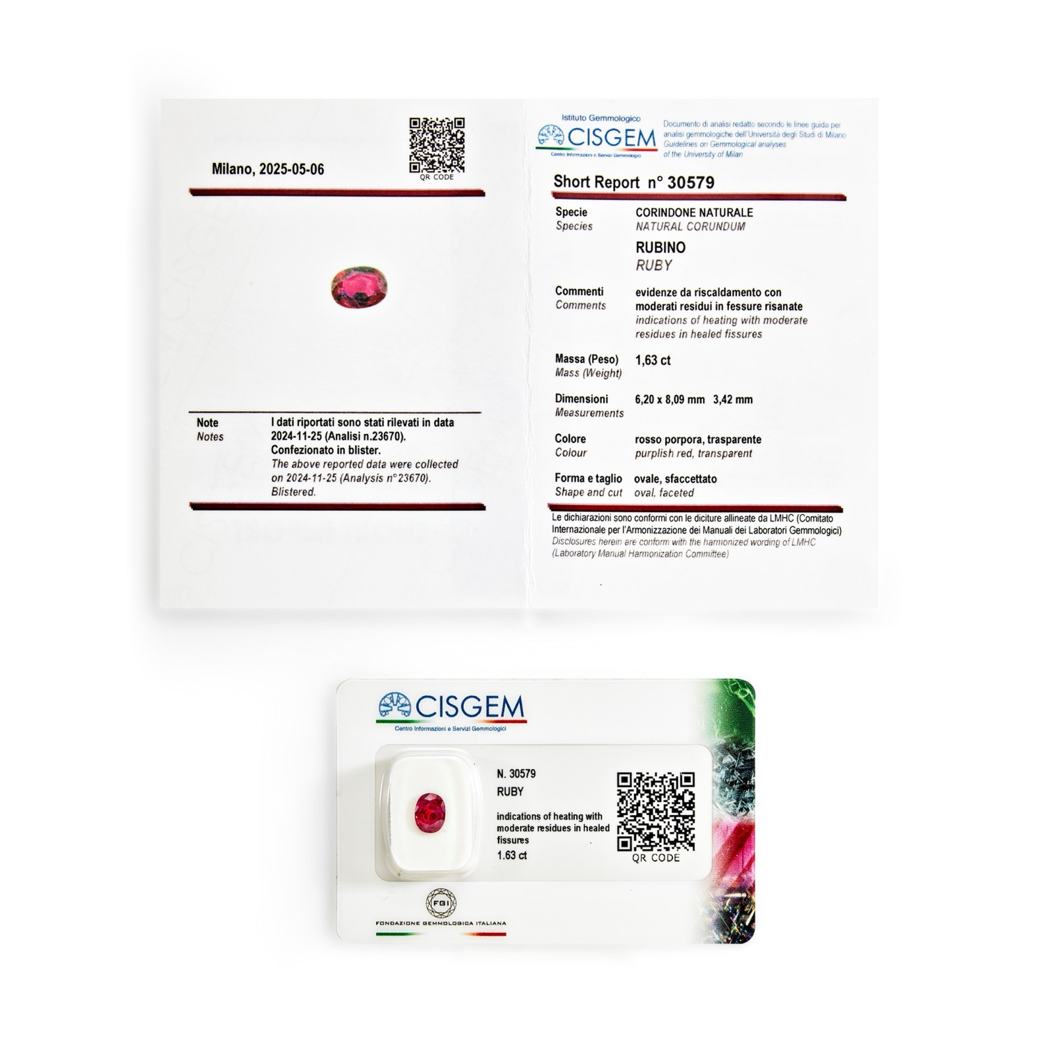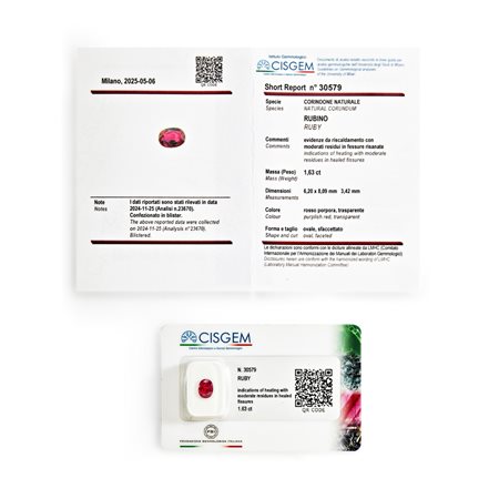 Rubino in blister ct 1,63 mm 6,20 x 8,09 h mm 3,42