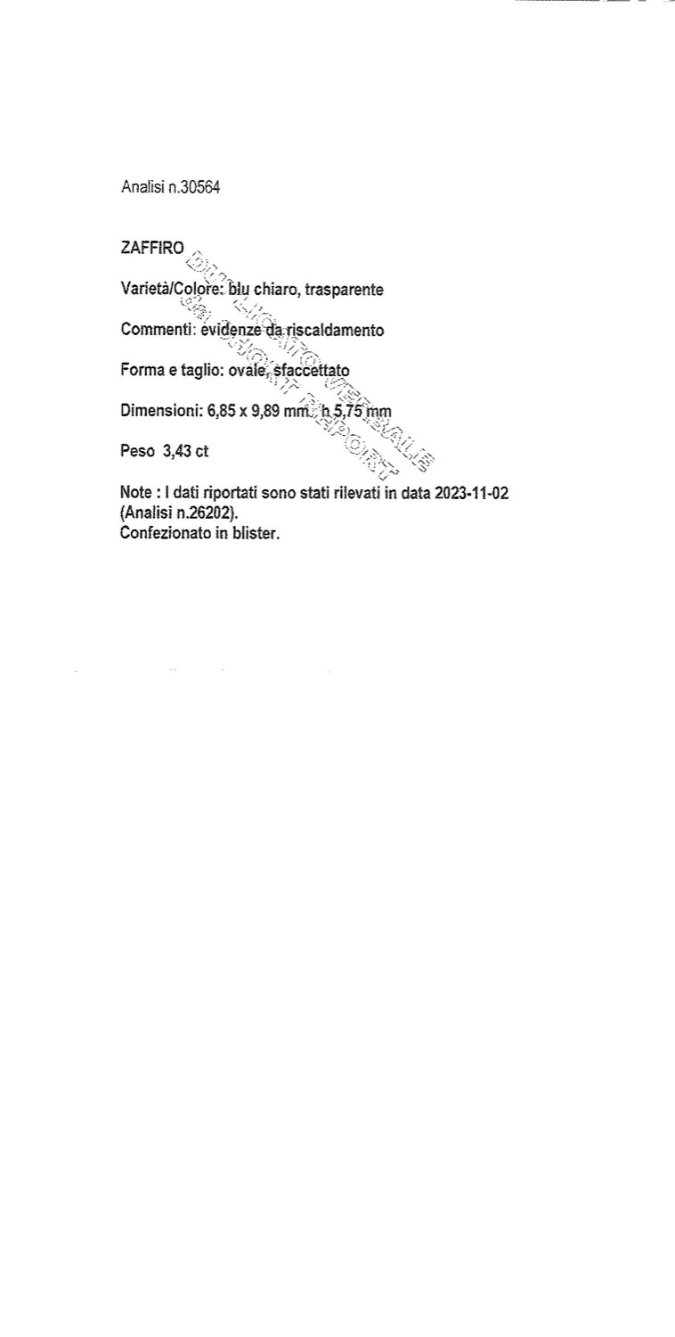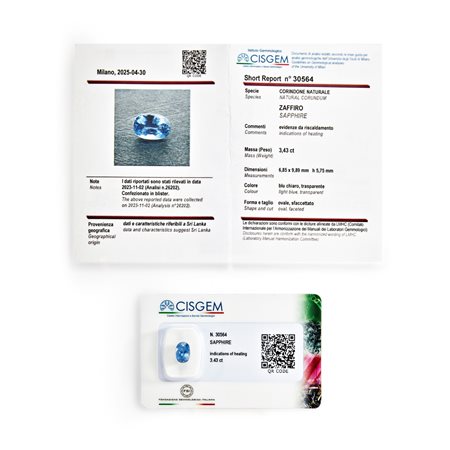 Precedente Lotto 232 Successivo Finarte - Via dei Bossi 2, 20121 Milano Gemme / Tutti i colori della natura Sessione unica martedì 23 settembre 2025 ore 11:00 (UTC +01:00) Zaffiro Ceylon in blister ct 3,43 mm 6,85 x 9,89 h mm 5,75 di forma ovale, taglio sfaccettato, heat.