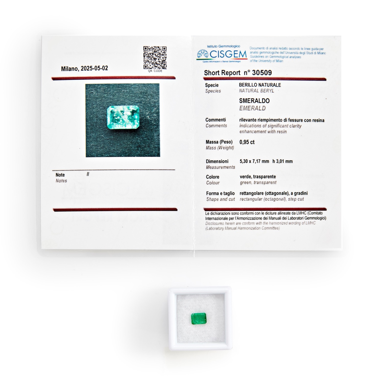 di forma rettangolare (ottagonale), taglio a gradini, uno provenienza Colombia e lieve olio, uno provenienza Zambia e moderato olio e resina e uno rilevante resina.