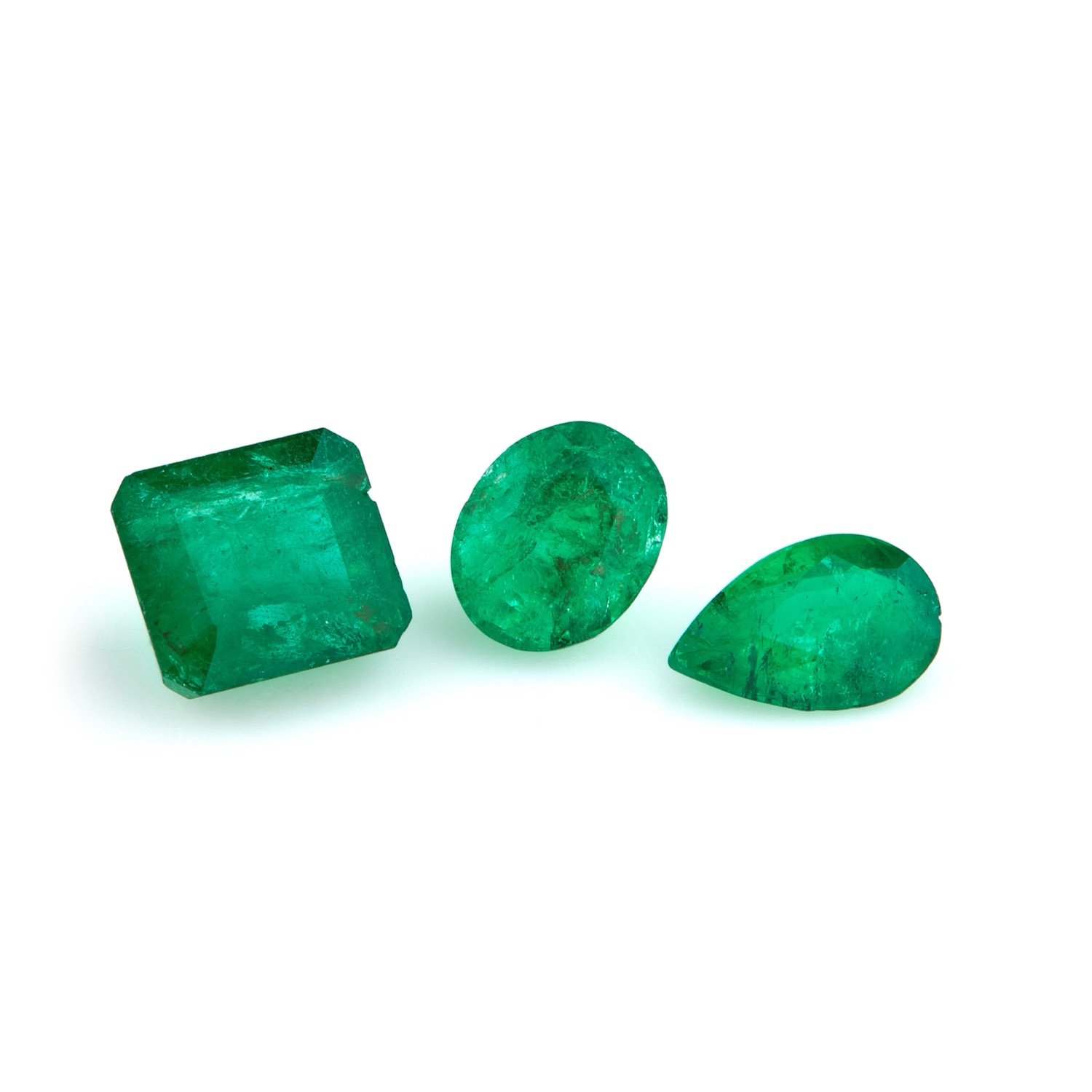 Lotto di tre smeraldi in cartina per totale ct 7,56 mm 7,00x9,00-6,00x10,00-8,00x9,00 circa