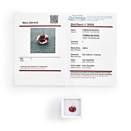 Lotto di due tormaline rosa in cartina e un eliodoro in blister per totale ct 11,50 misure diverse da mm 8,00x9,00 a 10,00x11,00 circa