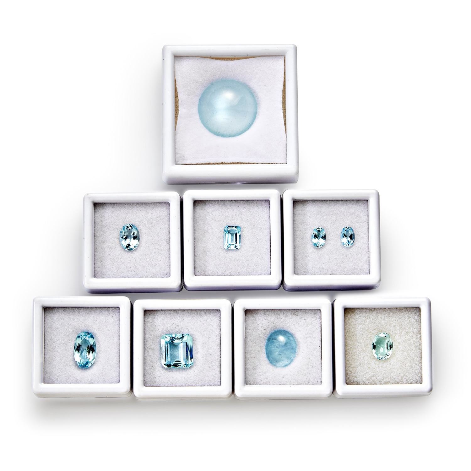 di forme diverse, ovale, rettangolare, quadrato (ottagonale) e rotondo, taglio sfaccettato, a gradini e cabochon.