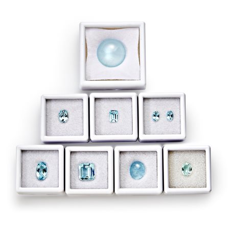 Lotto di acquemarine in cartina per totale ct 34,76 misure diverse da mm 4,00x6,00 a mm 18,00 circa