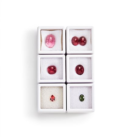 Lotto di tormaline rosa e verdi in cartina per totale ct 25,93 misure diverse da mm 5,00x7,00 a 10,00x14,00 circa