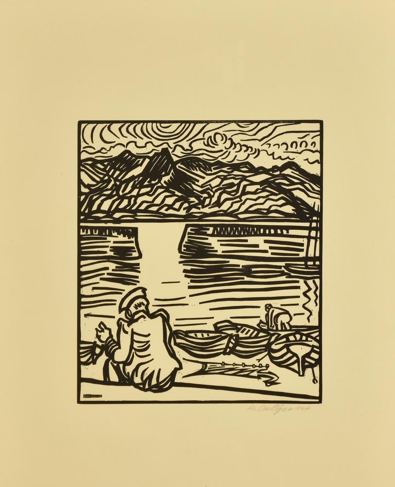Amleto Del Grosso SCENA DI PORTO xilografia, cm 44x32 firma e firma in lastra