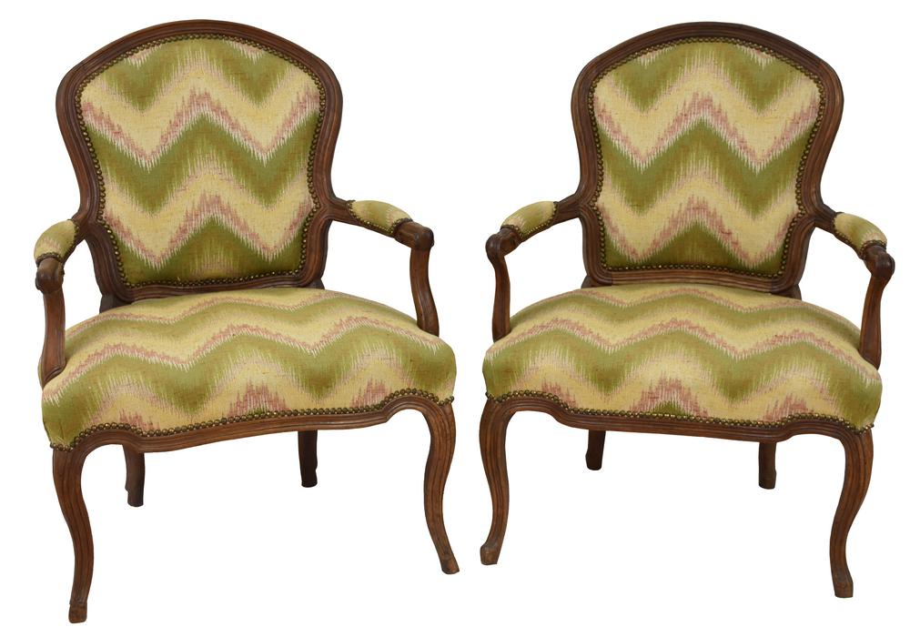 Coppia di poltrone in noce stile Luigi XV altezza seduta cm 45 fine XIX secolo