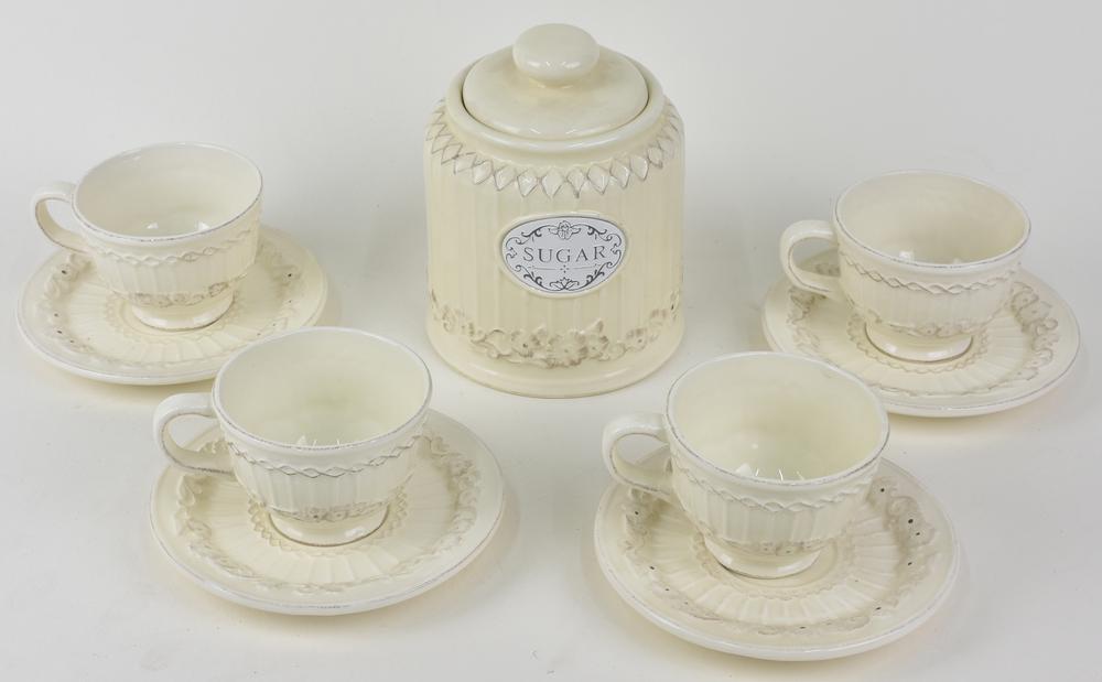 composto da barattolo per lo zucchero e 4 tazze con piattino