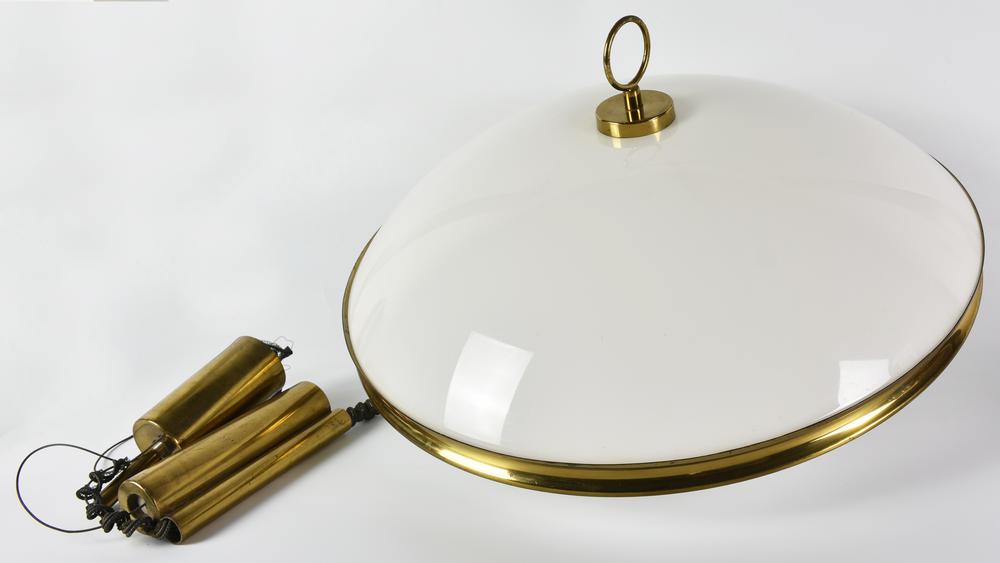 LAMPADARIO STILUX, anni 60 in perspex con struttura in ottone e contrappesi...