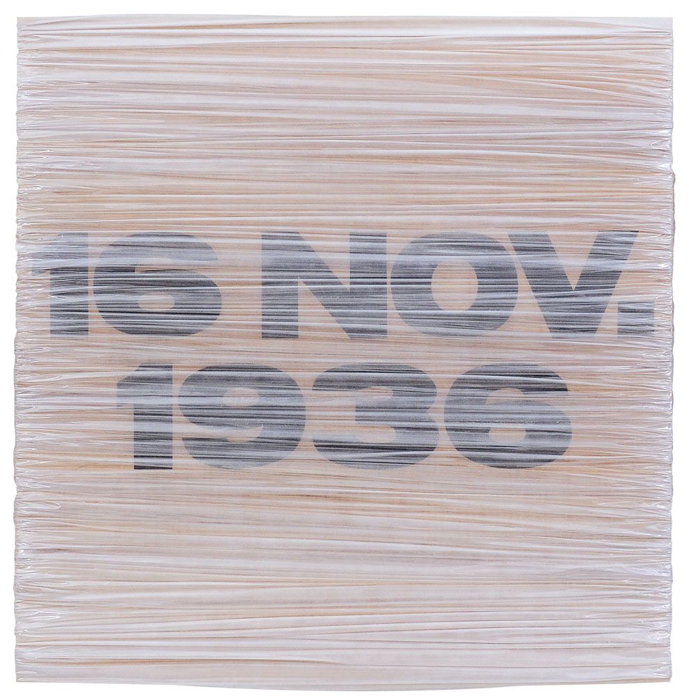 grafite nera su tavola piu' acrilico bianco su kristall cm. 100x100, firma, titolo e anno al retro, dichiarazione d'autenticità dell'artista su foto.