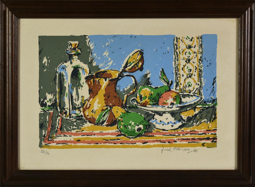 Lotto 13 | Fred Pittino NATURA MORTA litografia, cm 24,5x39 su foglio cm 47,5x33; es....