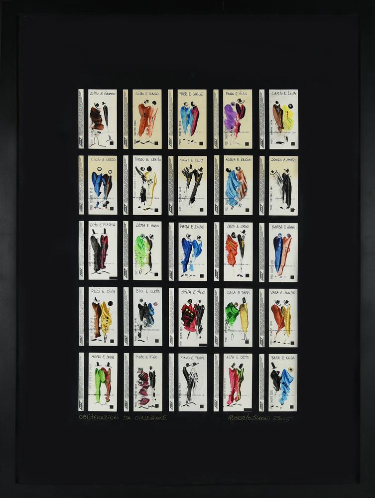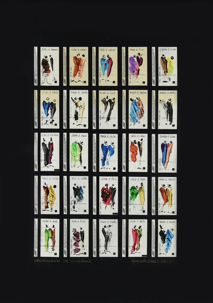 Lotto 128 | Roberto Sironi OBLITERAZIONI DA COLLEZIONE, 2015 tecnica mista su cartoncino,...