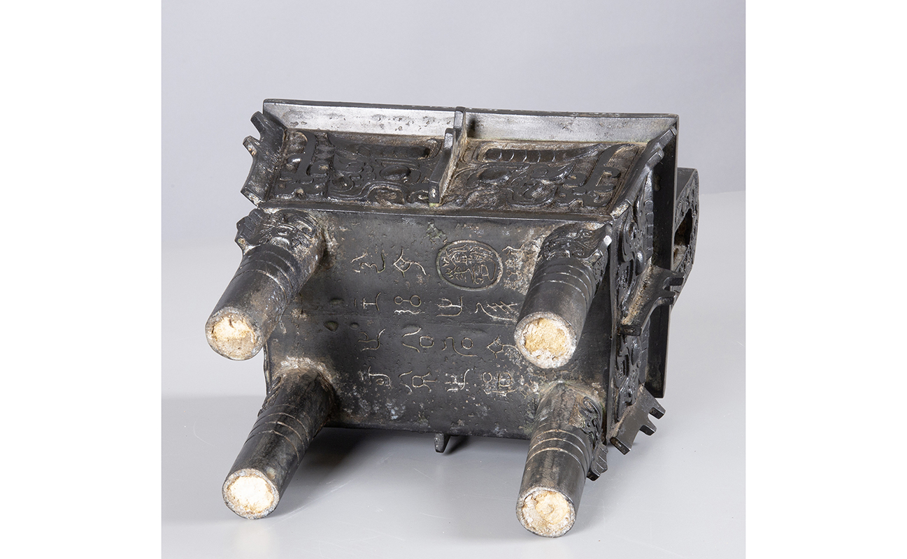 Vaso rituale in bronzo in stile arcaico iscrizione alla base Cina sec.XIX