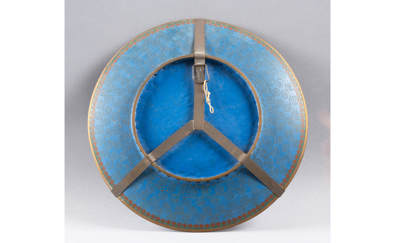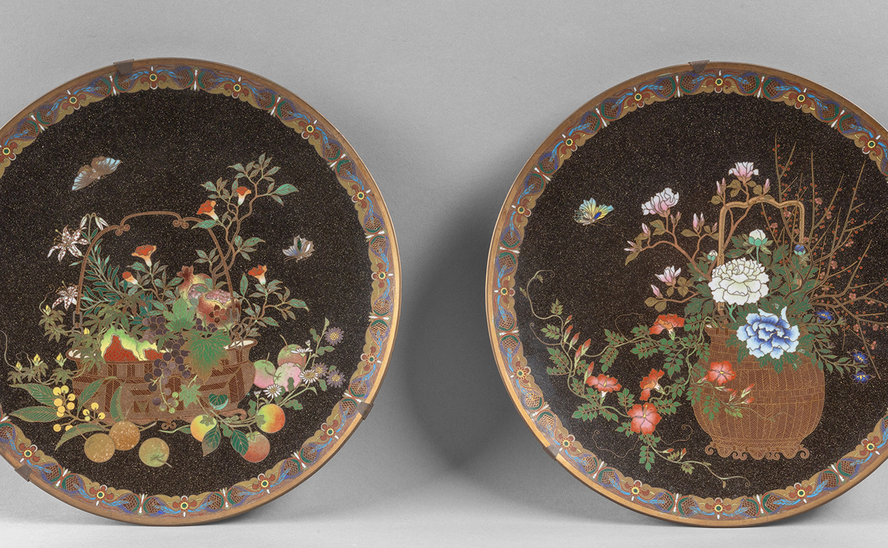Coppia di piatti cloisonnè a fondo nero Giappone fine sec.XIX