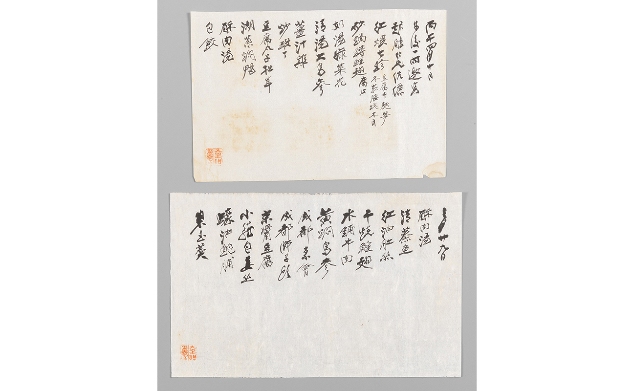 Due fogli di carta con scritte e timbri Cina sec.XX