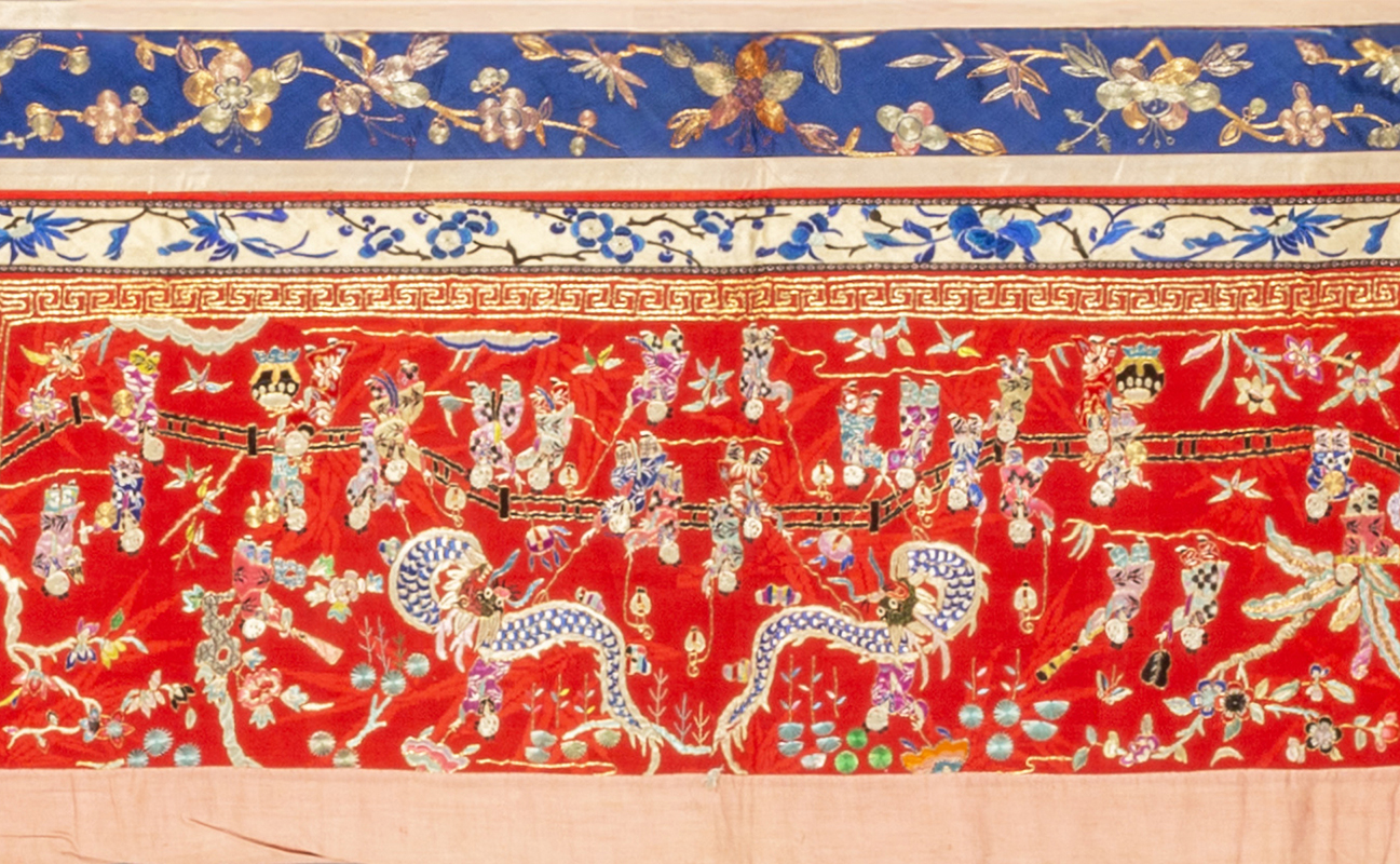 Tessuto in seta ricamata a cento ragazzi con drago Cina sec.XIX