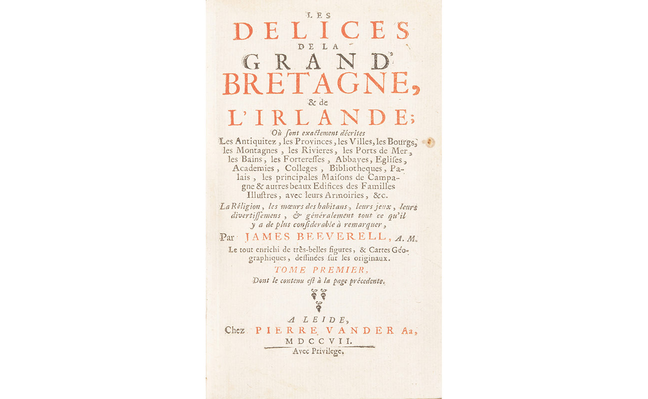 A) Beeverell James Les délices de la Grand' Bretagne et de l'Irlande Leida Chez Pierre Vander 1707 8 tomi in 7 volumi.