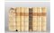 Legature in piena pergamena rigida con tassello in marocchino fulvo (cuffia inferiore danneggiata al tomo I) salvo tomo IV: pieno vitello con dorso dorato a tassello rosso. Buone condizioni dell'interno.