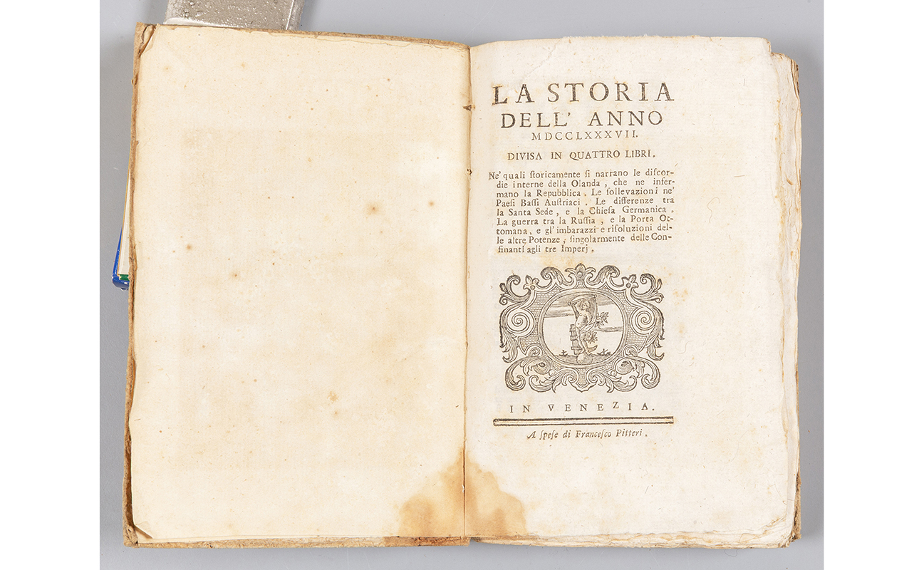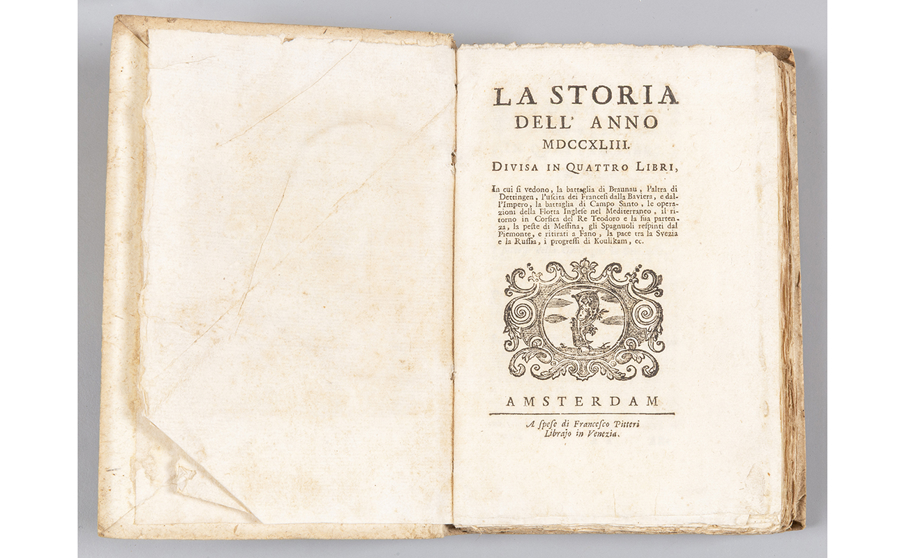 A) [Montini Innocenzo] La Storia dell'anno 1743 divisa in quattro libri Amsterdam [rectius Venezia] A spese di Francesco Pitteri librajo in Venezia s.d.