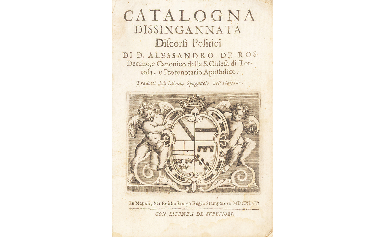 Ros Alejandro Domingo de Catalogna dissingannata discorsi politici Napoli per Egidio Longo regio stampatore 1647.