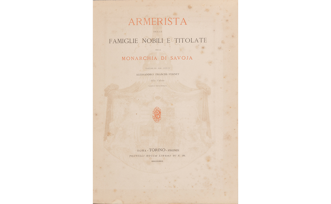 C) Franchi-Verney Alessandro Armerista delle famiglie nobili e titolate della monarchia di Savoia Torino Bocca 1873.