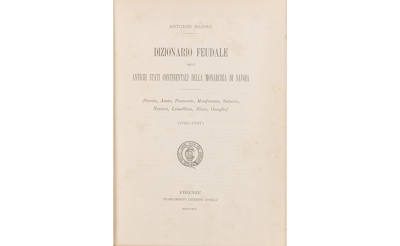 A) Manno Antonio Dizionario feudale degli antichi stati continentali della monarchia di Savoia Firenze Stabilimento Giuseppe Civelli 1895.