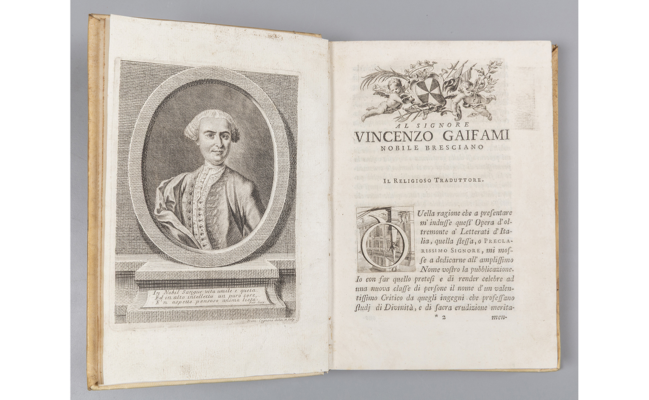 In-4° (mm 260x180). Frontespizio con vignetta allegorica e antiporta calcografica (ritratto di Vincenzo Gaifani dedicatario inciso da Domenico Cagnoni) e 12 tavole incise.