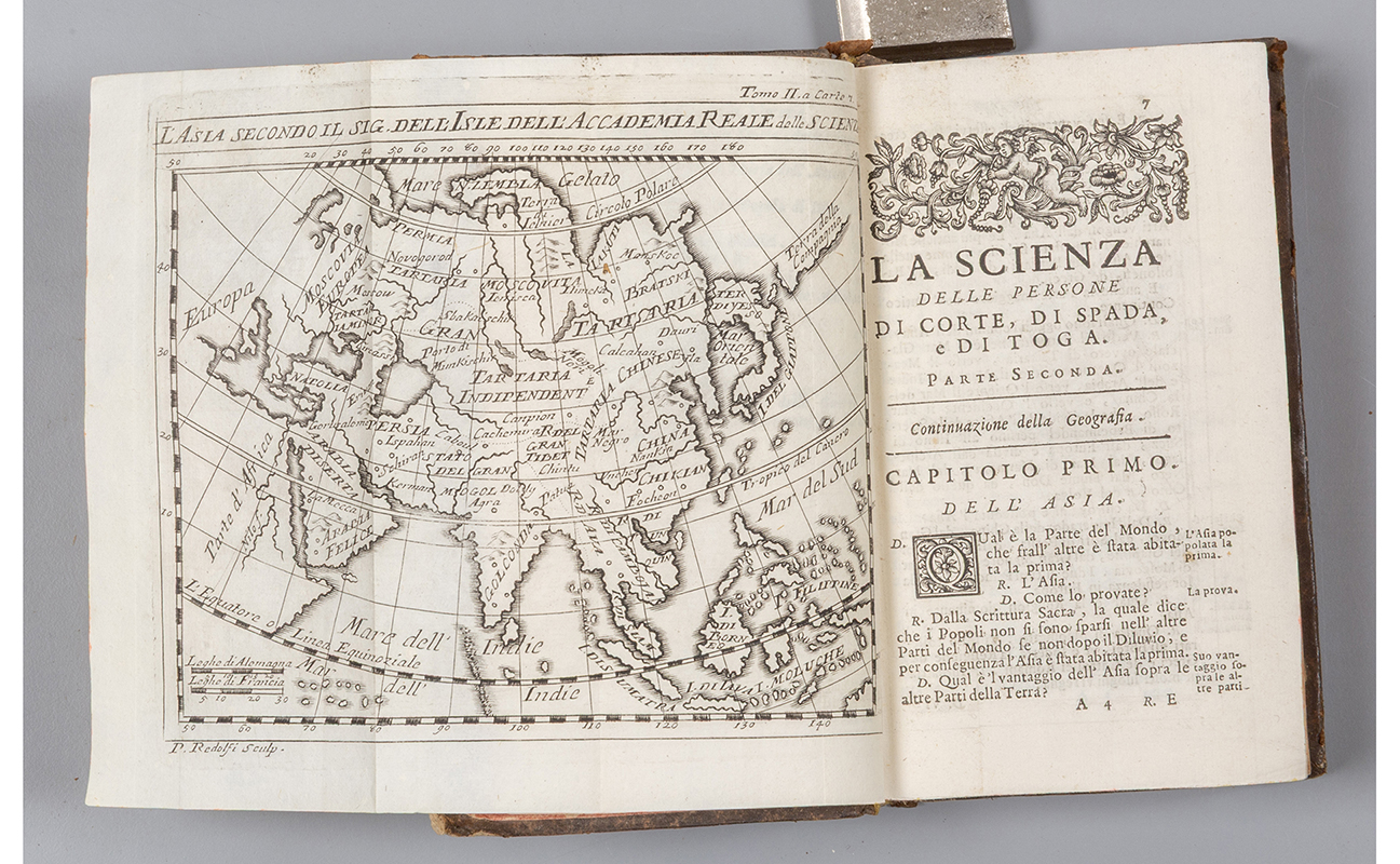A) Chevigny Limiers (de) H.P La Scienza delle persone di corte di spada e di toga Venezia Nella stamperia Baglioni 1720. 4 voll.