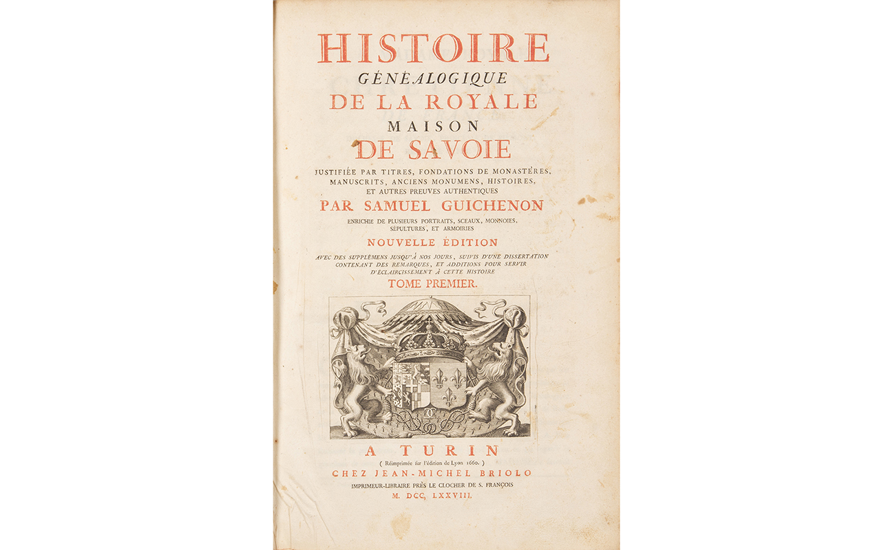 Guichenon Samuel Histoire généalogique de la Royale Maison de Savoie Torino Chez Jean-Michel Briolo 1778.
