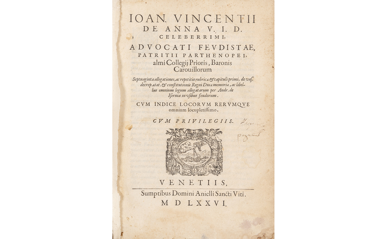 F) De Anna Giovan Vincenzo Septuaginta allegationes... in usibus feudorum Venezia Sumptibus domini Anielli Sancti Viti 1571.