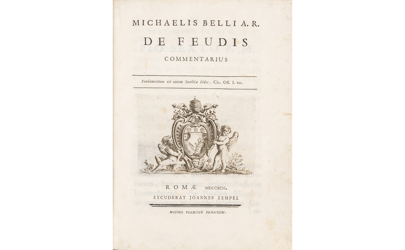 E) Belli Michele De Feudis commentarius Roma Excudebat Joannes Zempel 1792.