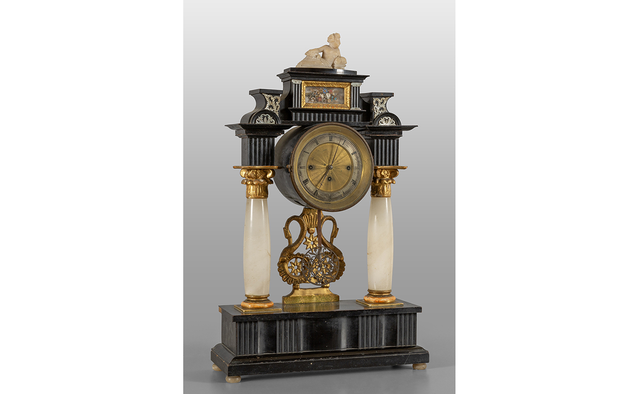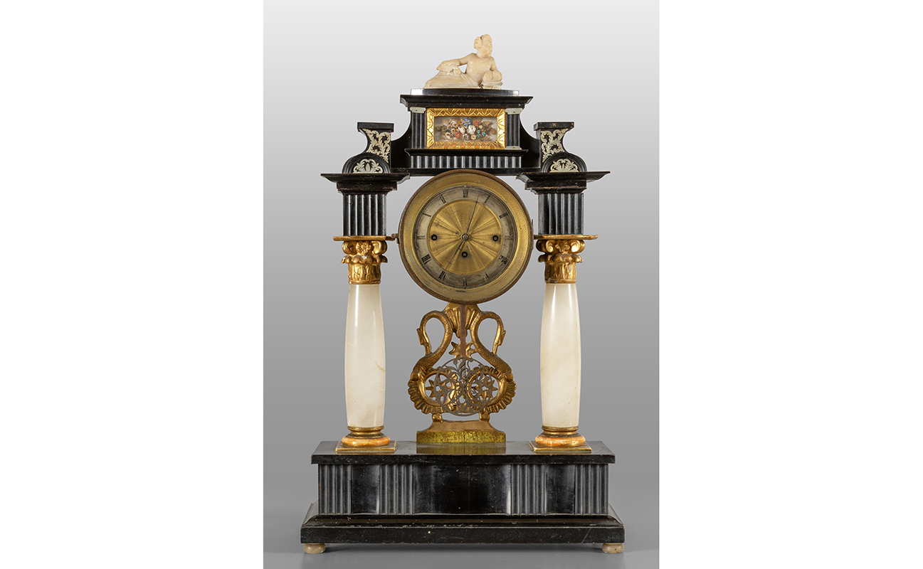 Orologio neoclassico in legno ebanizzato ed alabastro sec.XIX