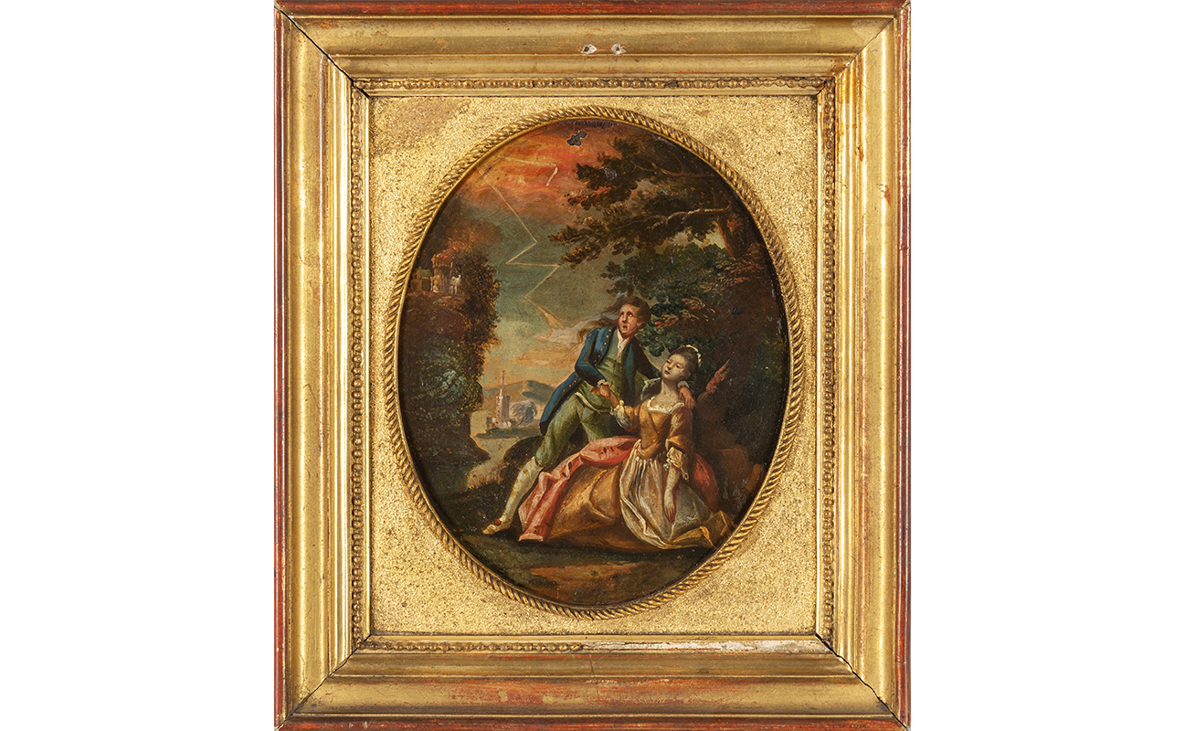 Scuola francese sec.XIX 'Scena galante' olio su rame di forma ovale