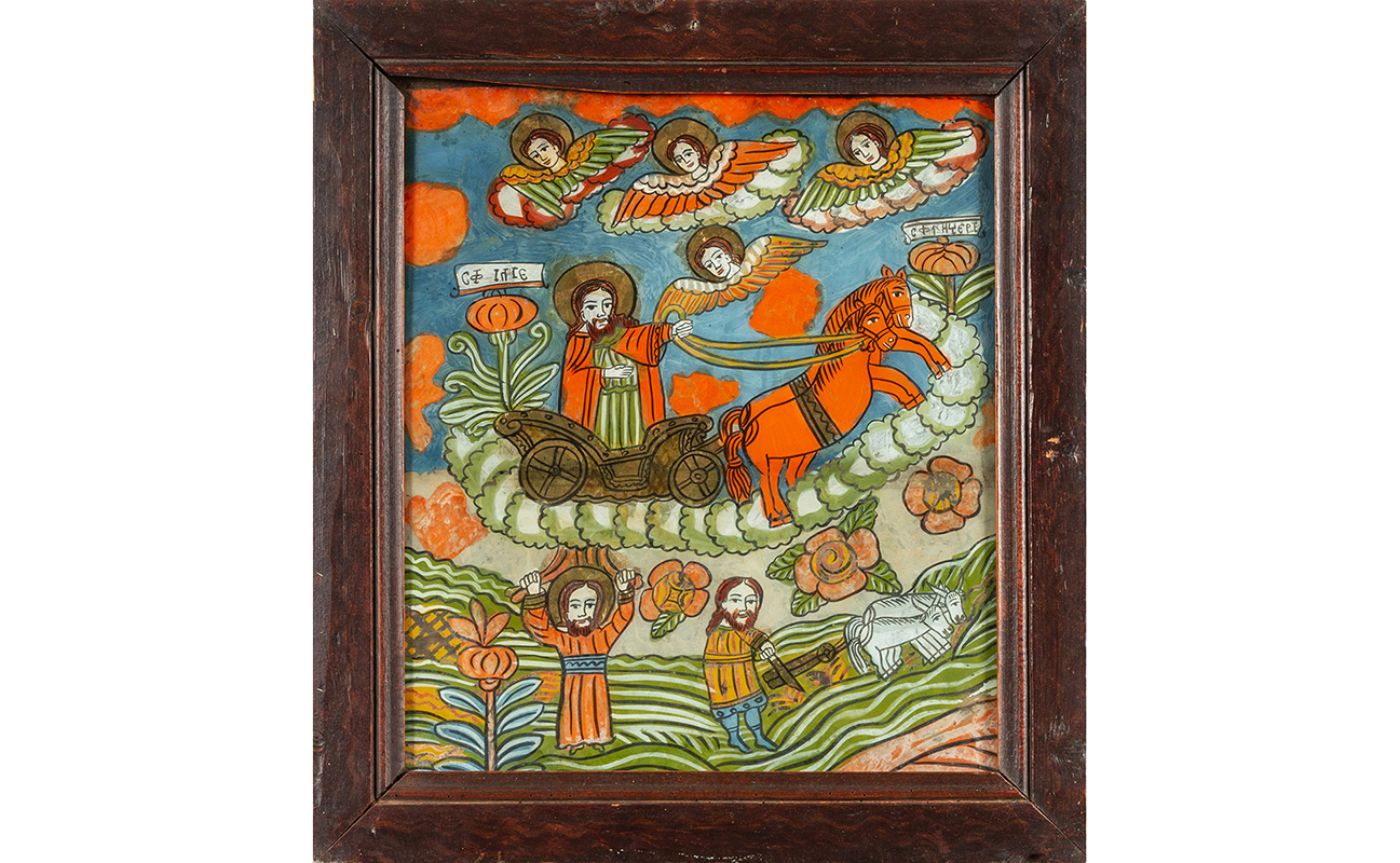 'Ascensione del Santo Profeta Elia' icona su vetro Russia metà sec.XIX