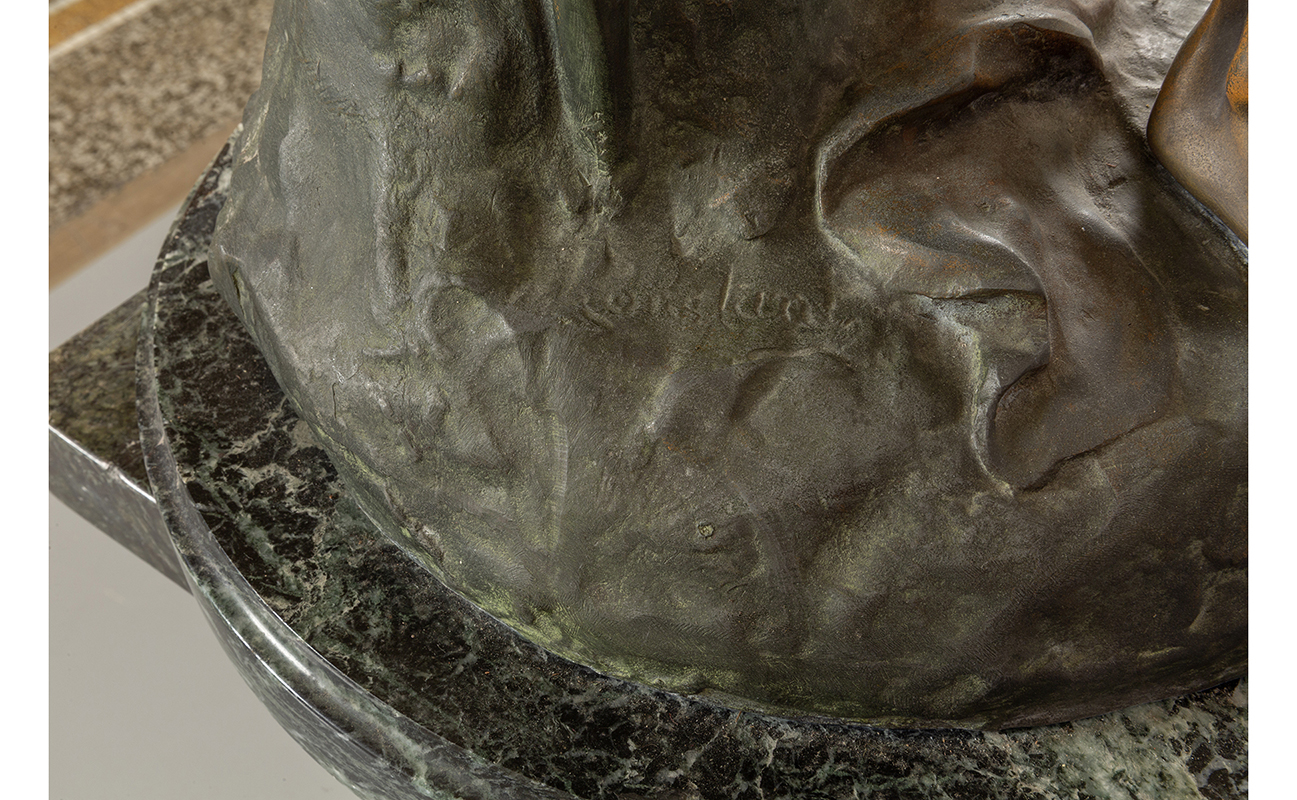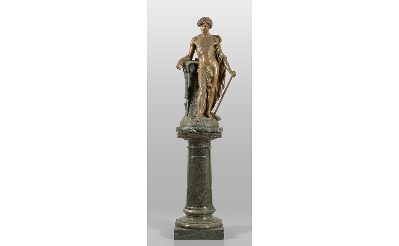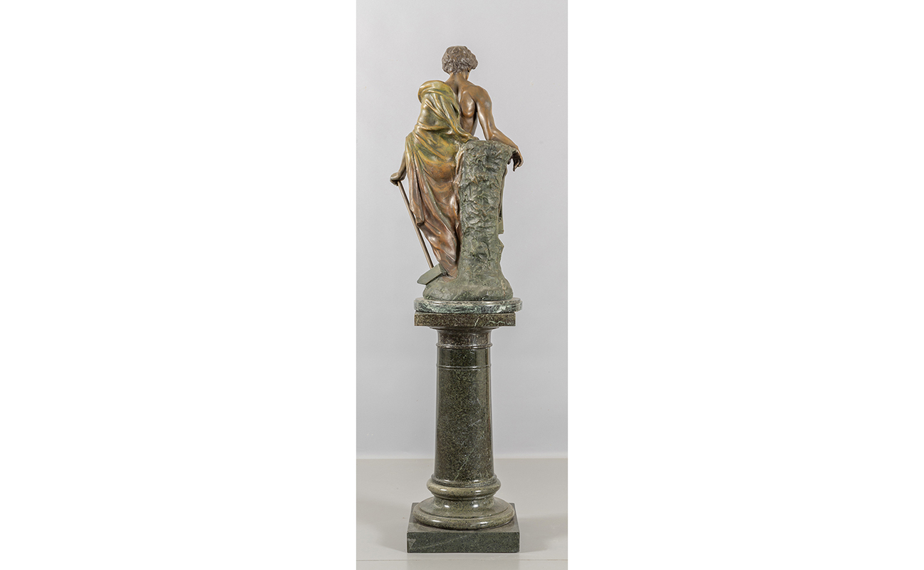 Allegoria della metallurgia scultura in bronzo poggiante su colonna in marmo