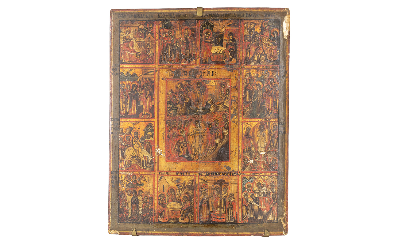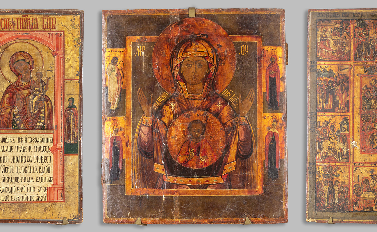 Tre icone dipinte a fondo oro su tavola Russia sec.XIX